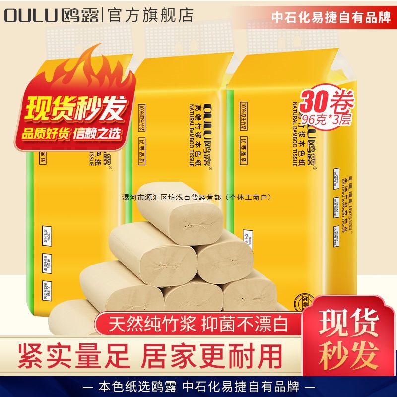 鸥露竹浆纸家用卫生纸巾整箱实惠装厕纸不漂白实心卷纸96g×30卷