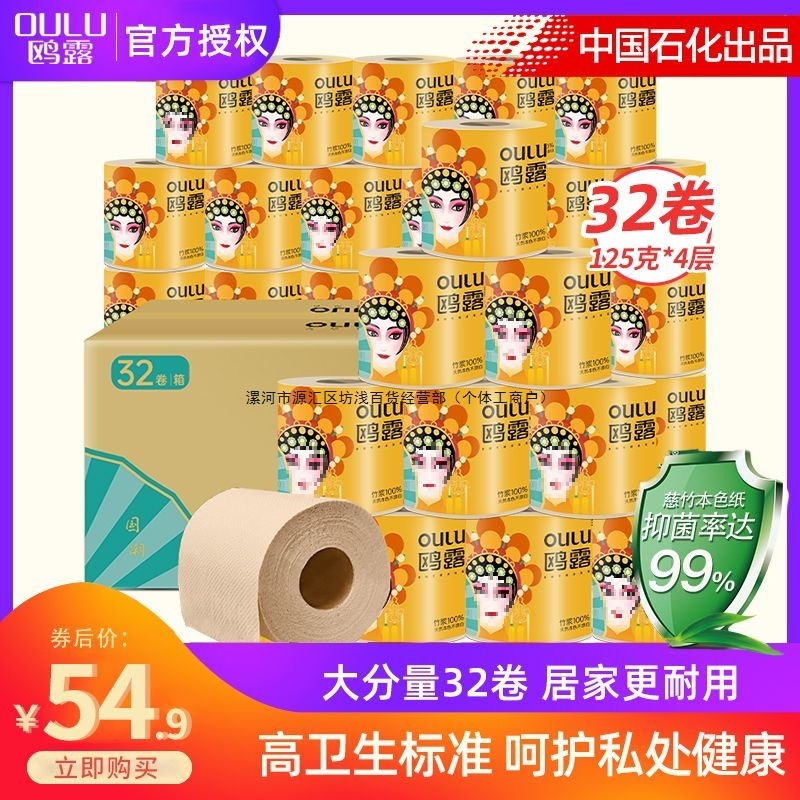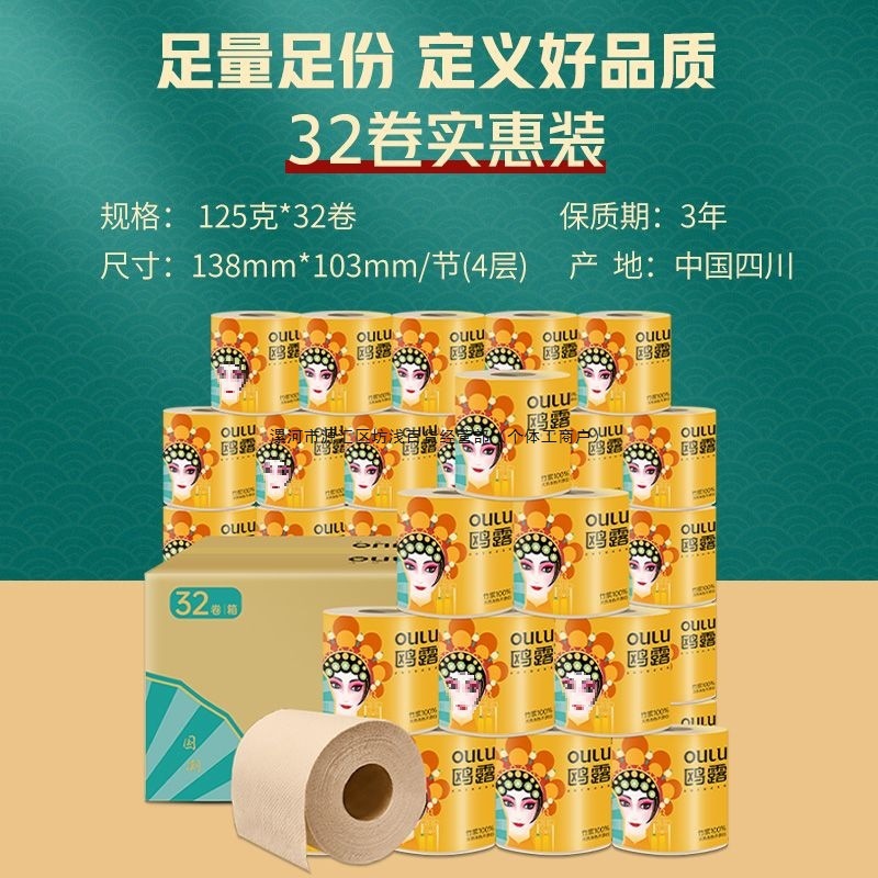 特价鸥露竹浆本色纸卫生纸卷纸批发家用实惠装卷筒纸巾整箱装32卷