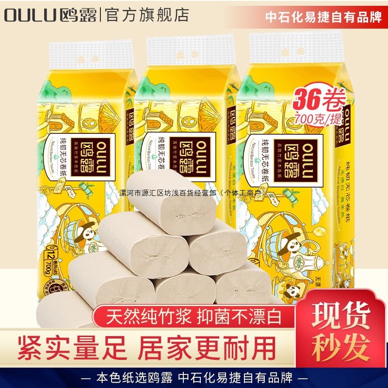 鸥露卷纸本色竹浆无芯卷纸家用实惠装整箱卫生纸厕纸无香卷筒纸巾