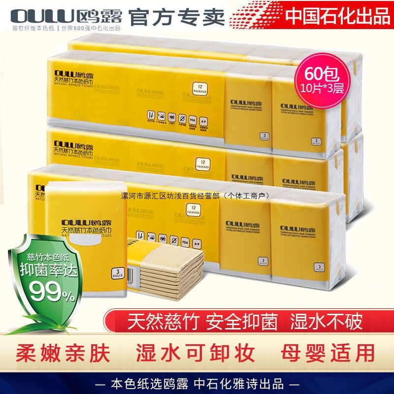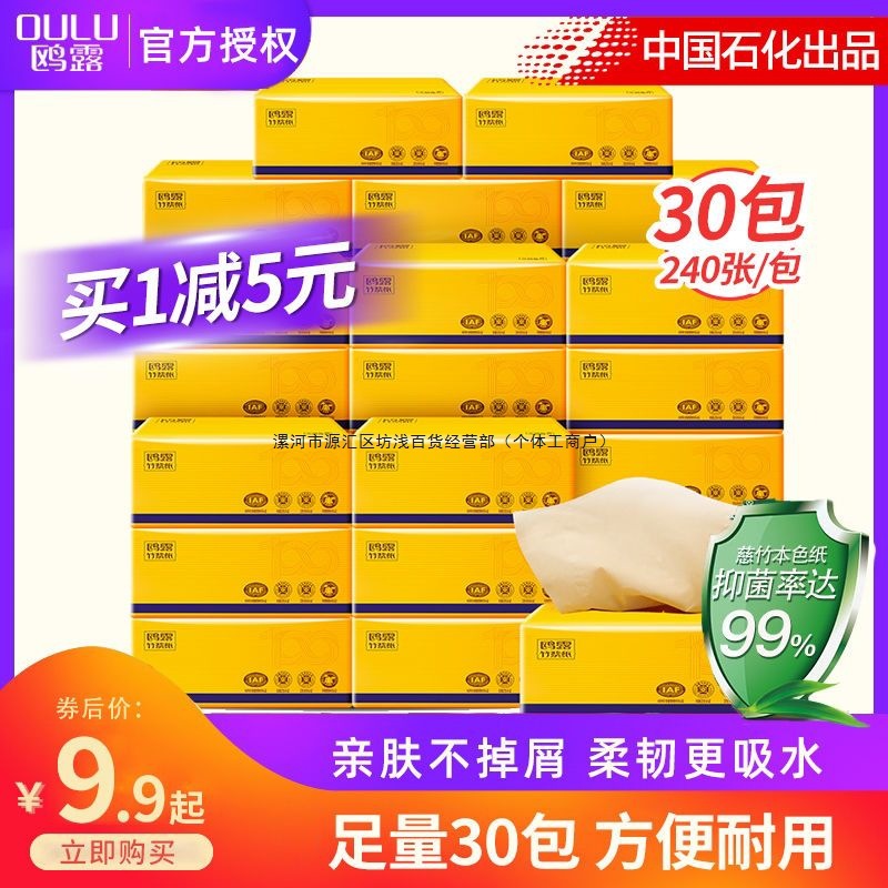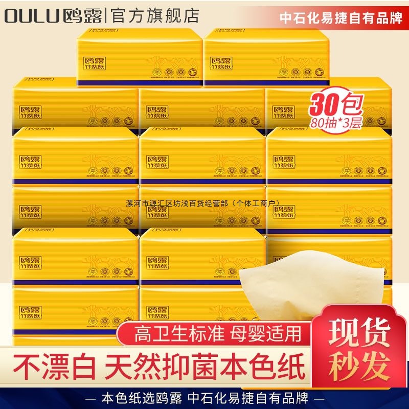 鸥露本色纸巾抽纸经济实惠装家用装竹浆纸巾旗舰店批发餐巾纸30包
