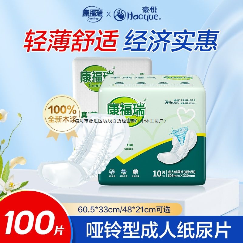康福瑞纸尿片605*330成人尿不湿老年人葫芦哑铃型纸尿片整箱100片