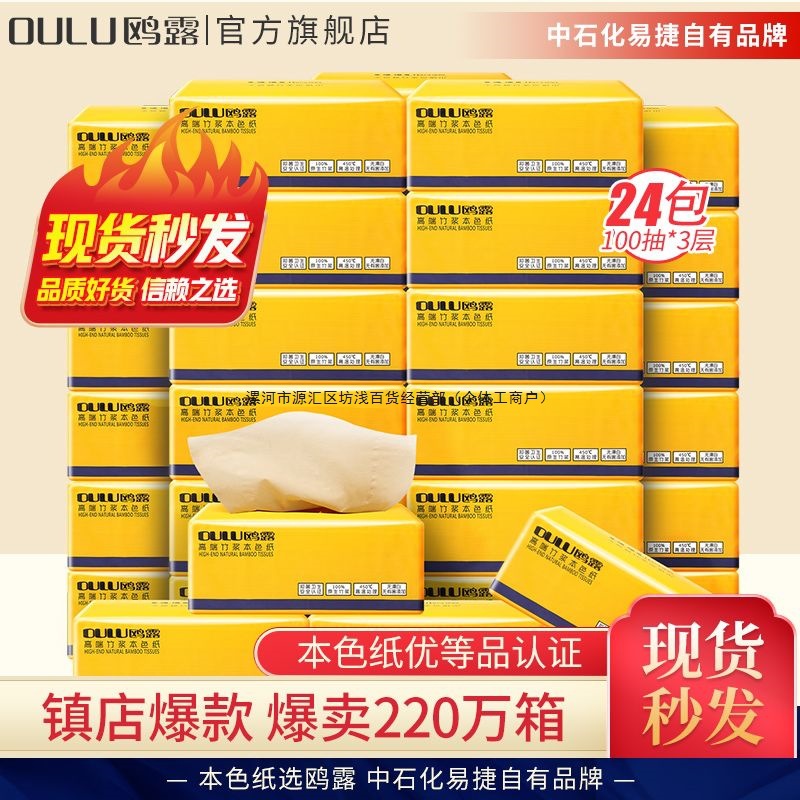 特价鸥露本色抽纸手纸竹浆纸卫生纸巾批发家用一整箱母婴抽纸24包