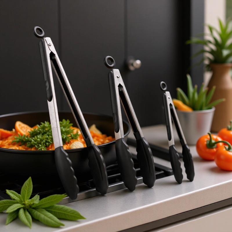 跨境现货7寸9寸12寸不锈钢硅胶食物夹BBQ烧烤夹耐高温厨房食品夹