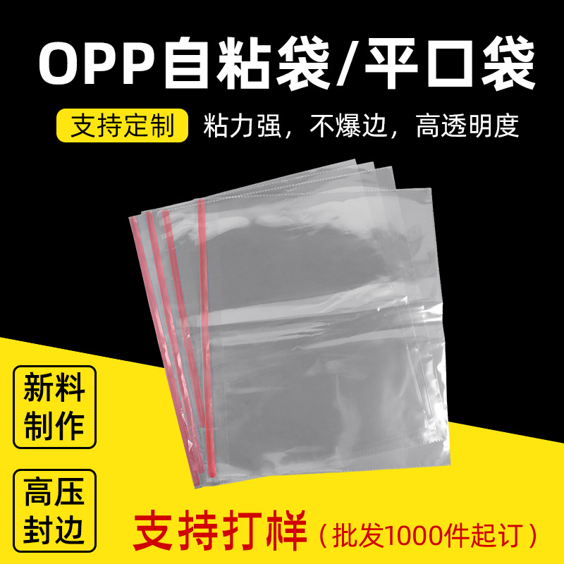 不干胶opp自粘袋平口OPP袋透明塑料服装包装袋opp自粘袋现货批发