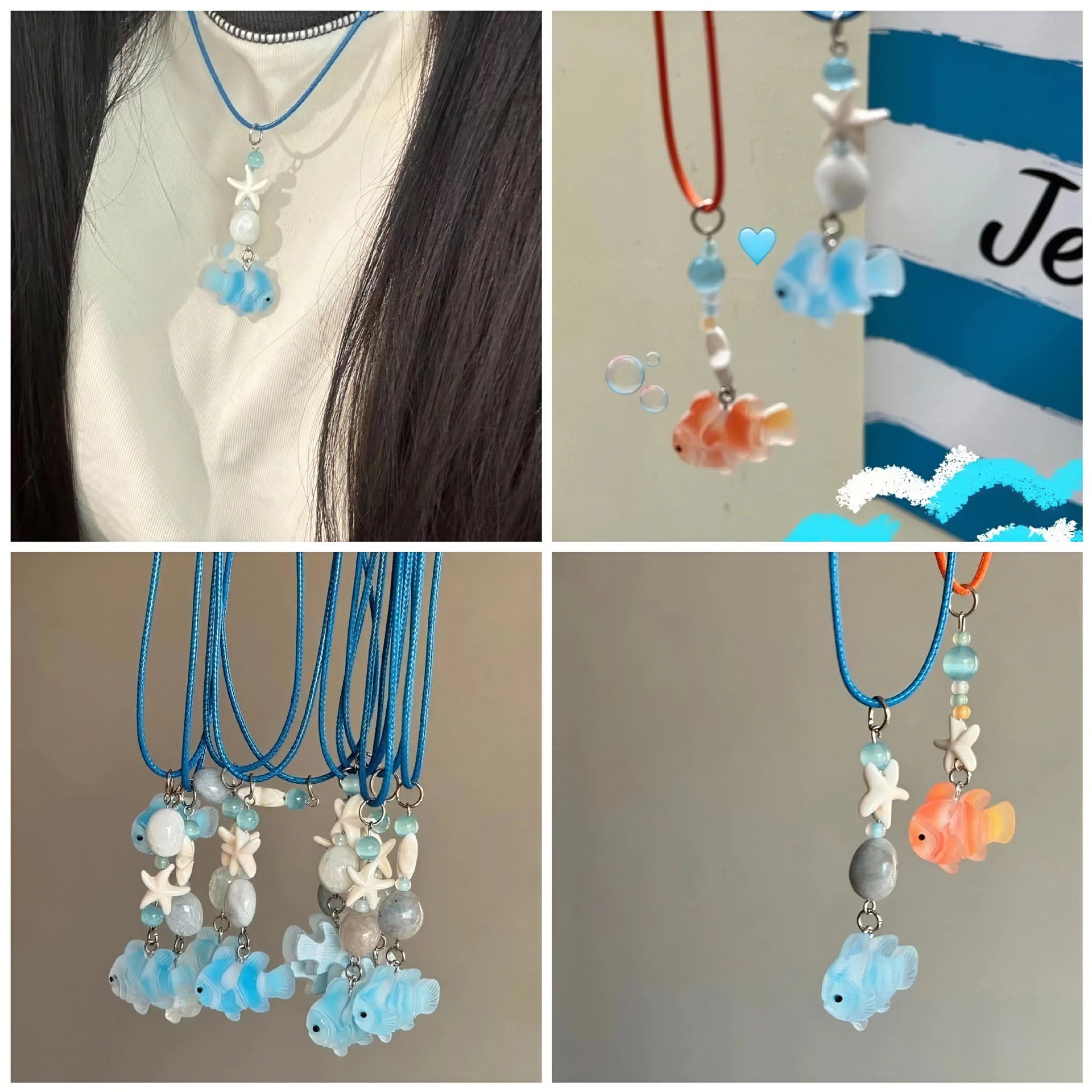 可爱少女风橘色小丑鱼蓝色小鱼项链女海洋生物海星串珠百搭锁骨链