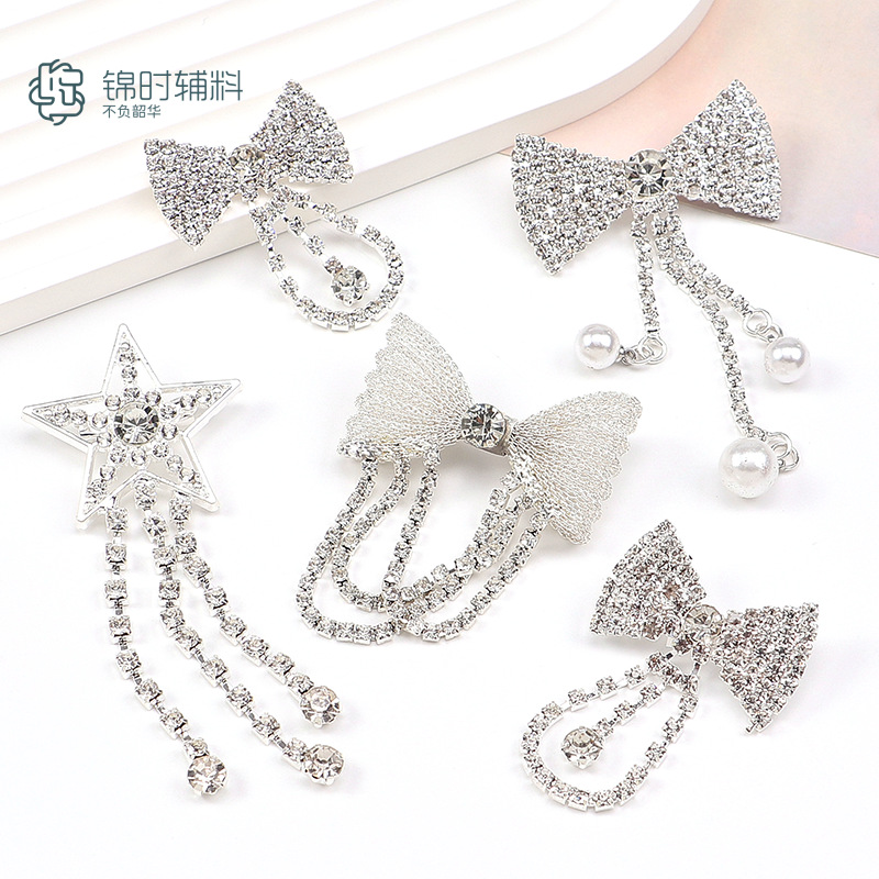 新款个性五角星长款流苏胸针女镶钻轻奢气质别针批发DIY辅料配饰