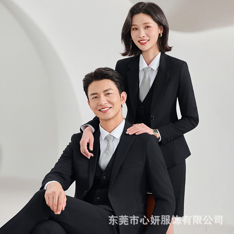 黑色高级西服套装男女同款商务企业银行职业装新郎结婚礼服正装