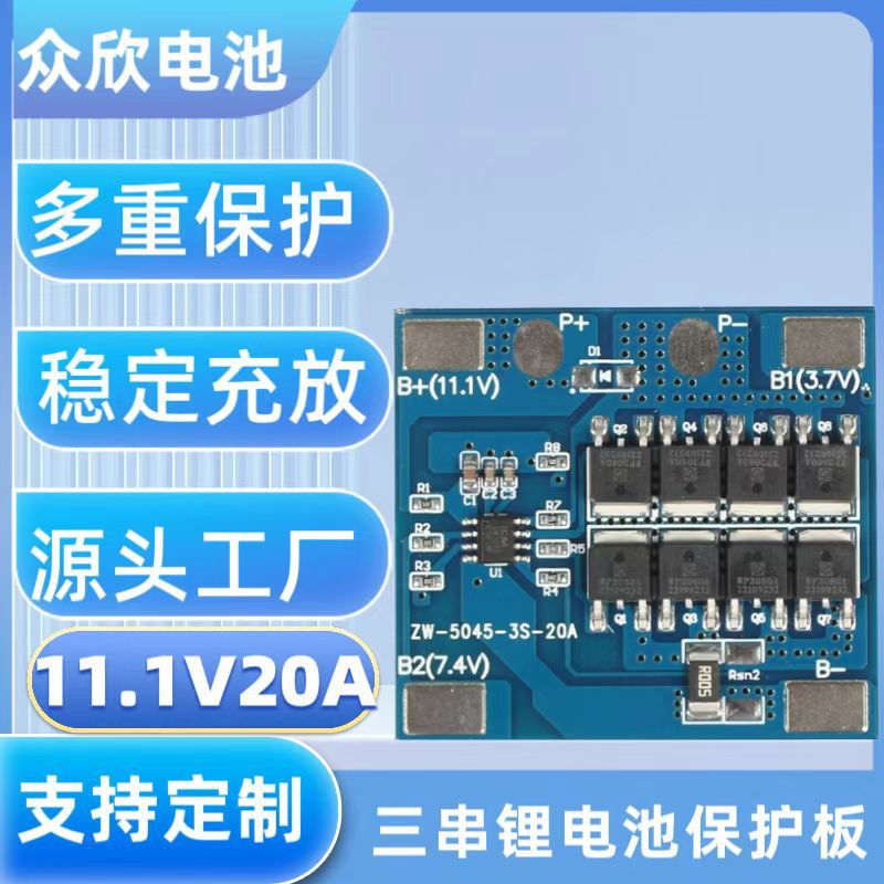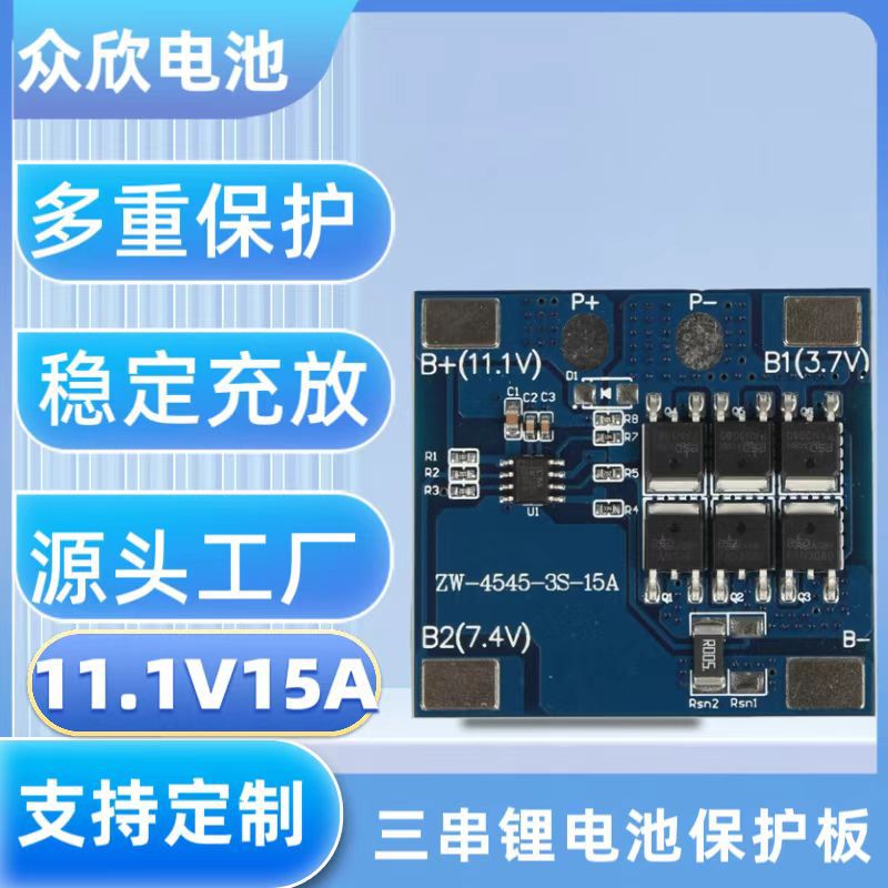 锂电池11.1V大功率保护板5-15安太阳能应急储能等电池配件电源