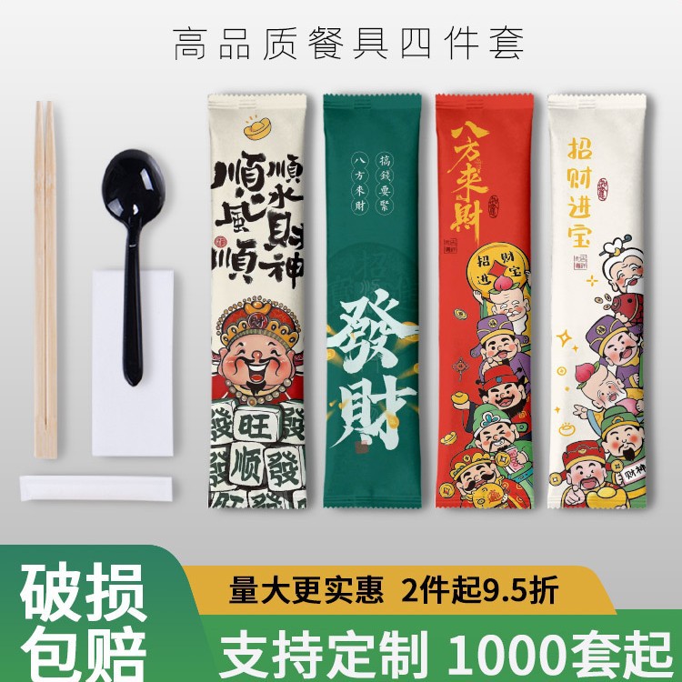高档一次性筷子四件套独立包装外卖商用饭店餐厅餐具logo批发