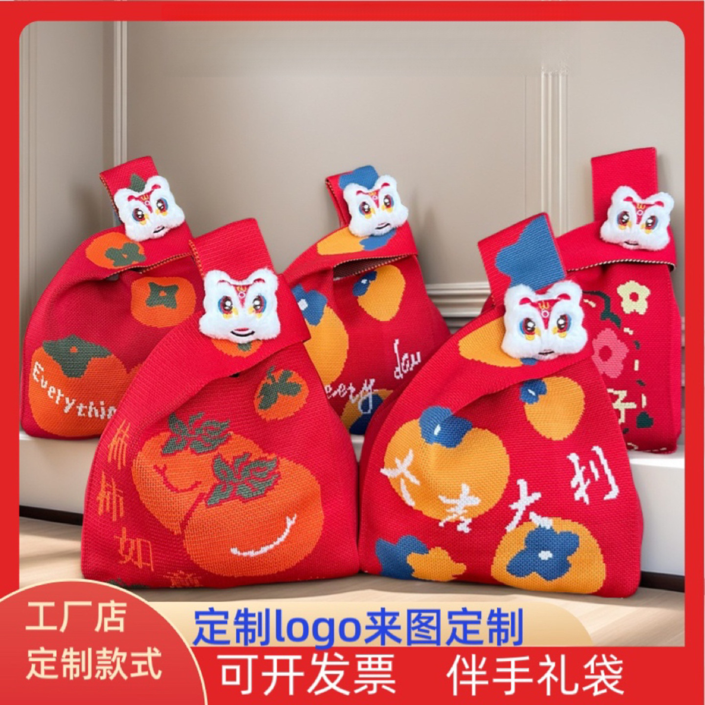针织手提袋新款创意龙年背心包卡通针织手腕包年会结婚喜庆伴手礼