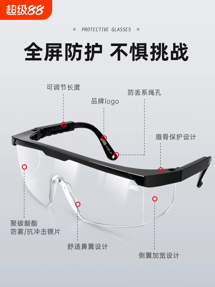 实验室专用高清防雾护目镜防飞溅化学工业隔离专用防灰尘透明眼罩