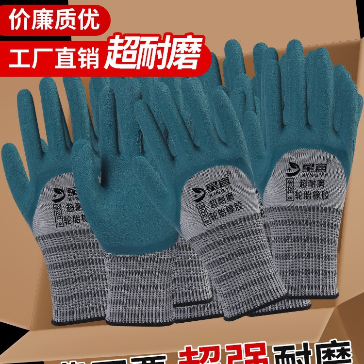 手套工作劳保耐磨防滑加厚劳动乳胶橡胶劳工防护干活工地浸胶防水