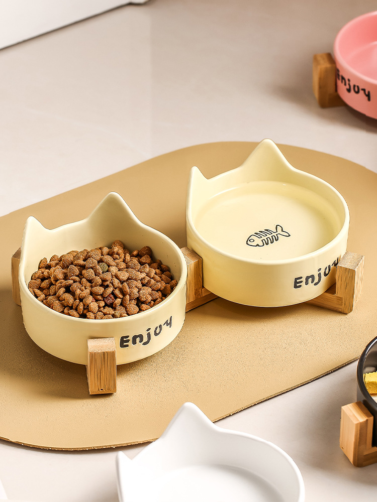 猫碗陶瓷猫食盆宠物碗喝水碗粮碗一体猫咪饭碗狗狗碗不易打翻护颈