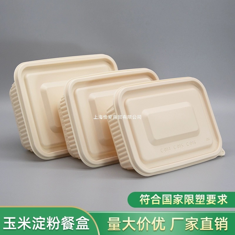 一次性餐盒长方形可降解玉米淀粉环保带盖外卖食品级打包盒整箱