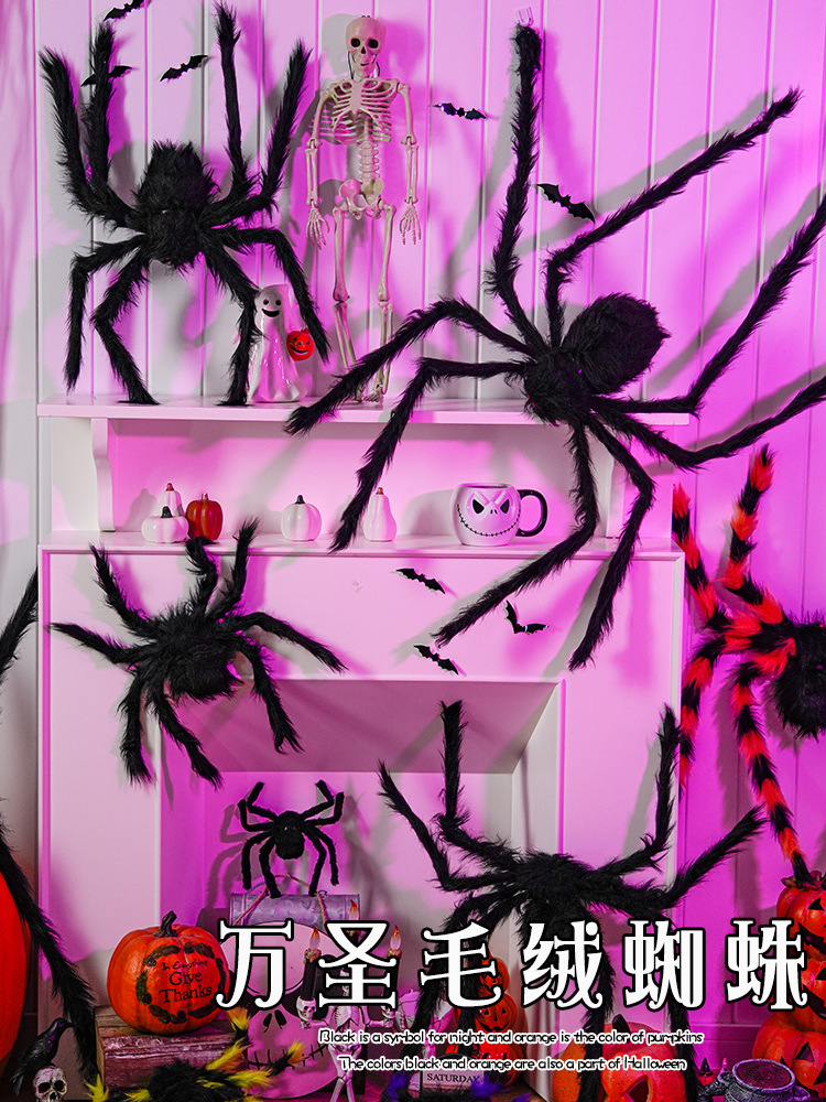 万圣节装饰品大蜘蛛布置道具摆件仿真毛绒场景店铺教室墙面主题