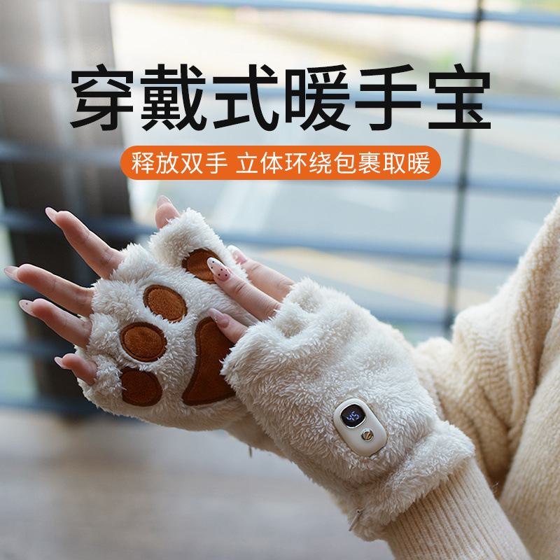 新款猫爪暖手宝发热手套充电式加热手套高颜值男女送竹质其他