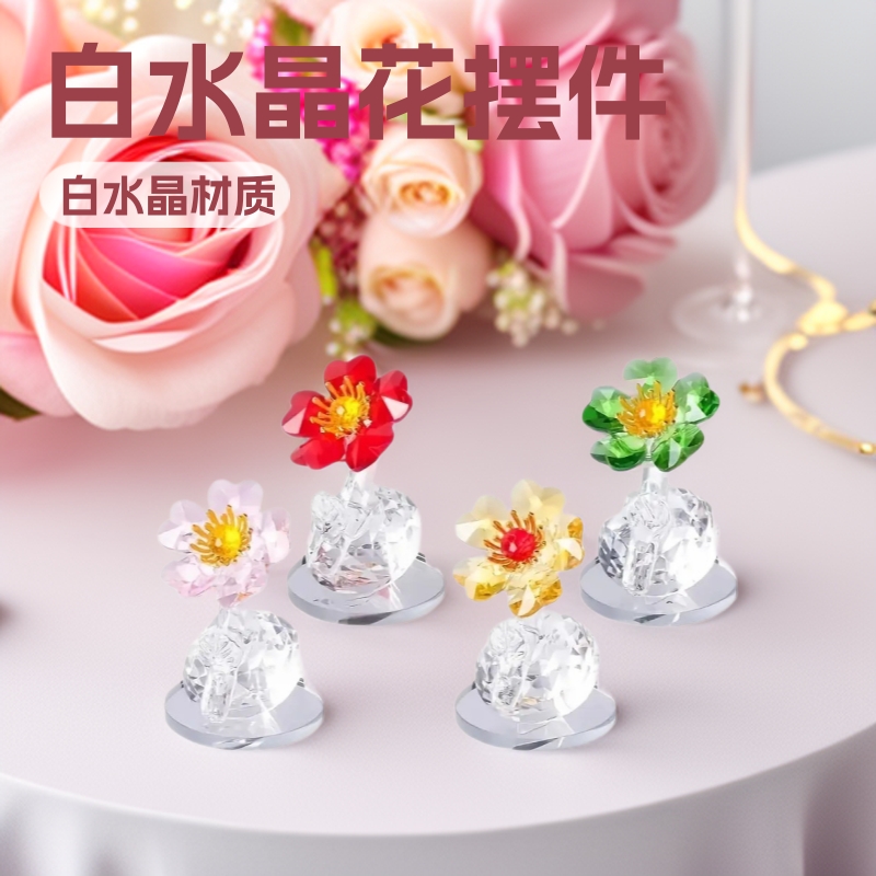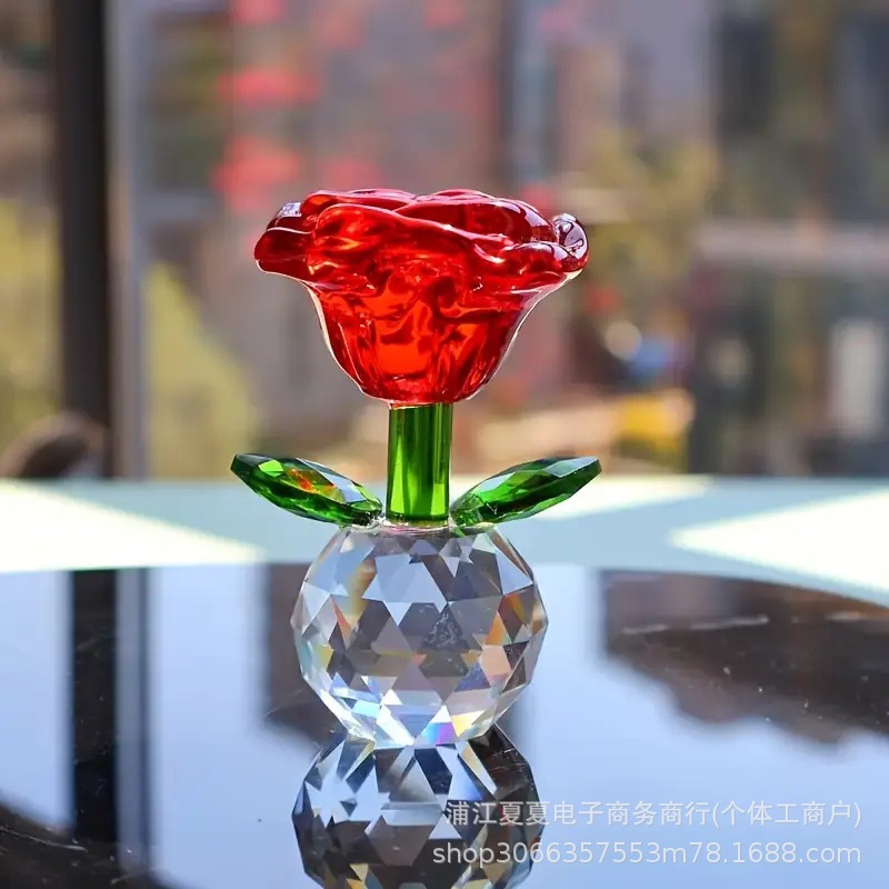 水晶工艺品花类动植物红色玫瑰粉桃心花朵装饰迷你客厅卧室小摆件