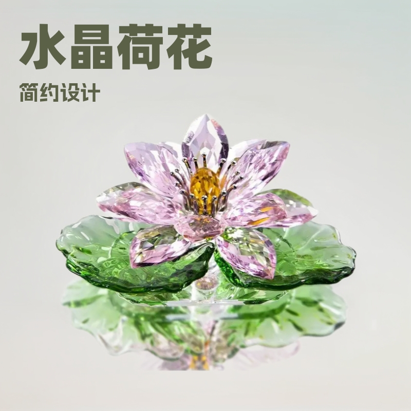 水晶荷花摆件带莲座简约现代风居家客厅水晶荷花装饰品水晶工艺品