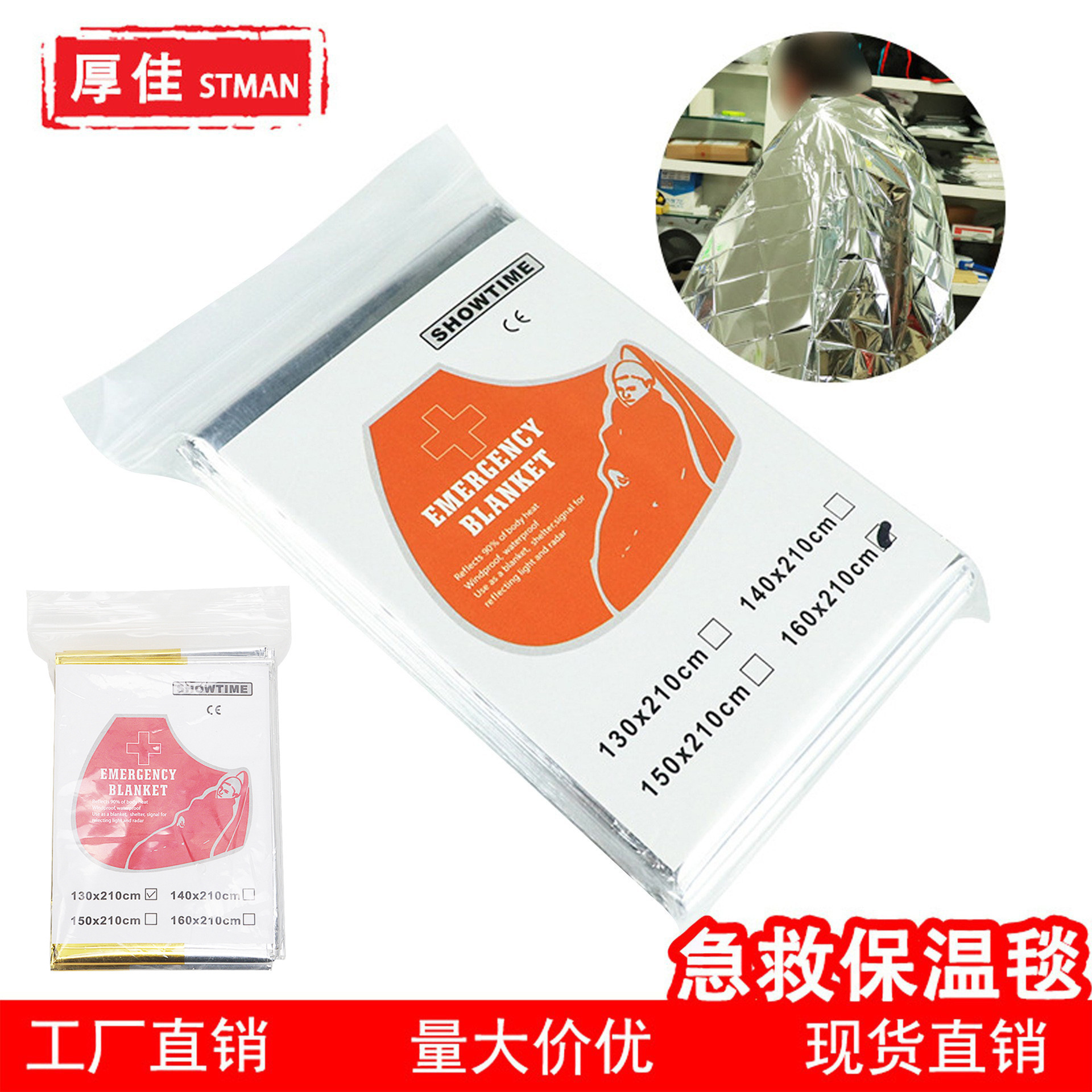 原厂户外便携应急毯多功能急救保温毯子救生毯求生毯防晒薄膜
