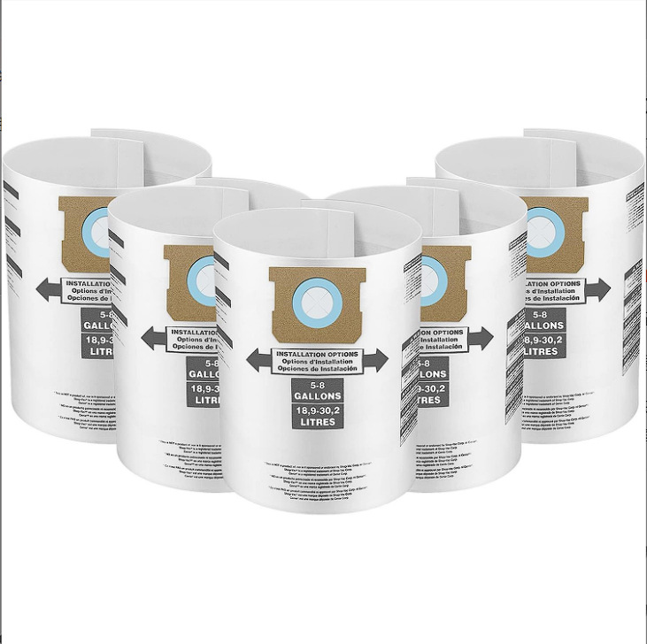 适配于Shop vac5-8 加仑,Type E 90661吸尘器集尘袋双层白色