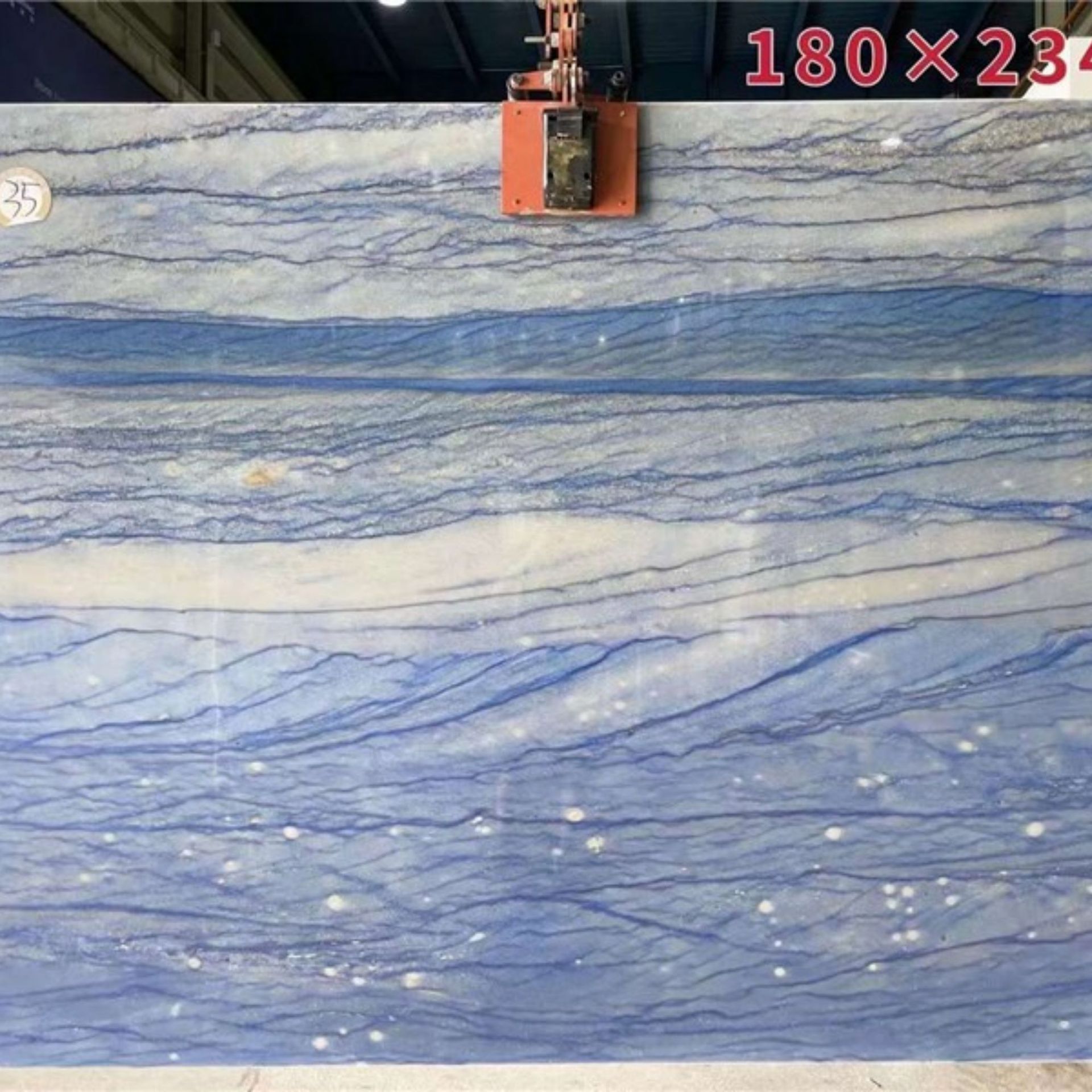 定制加工巴西蓝水晶大理石 奢石背景墙家具茶几台面蓝色透光石材