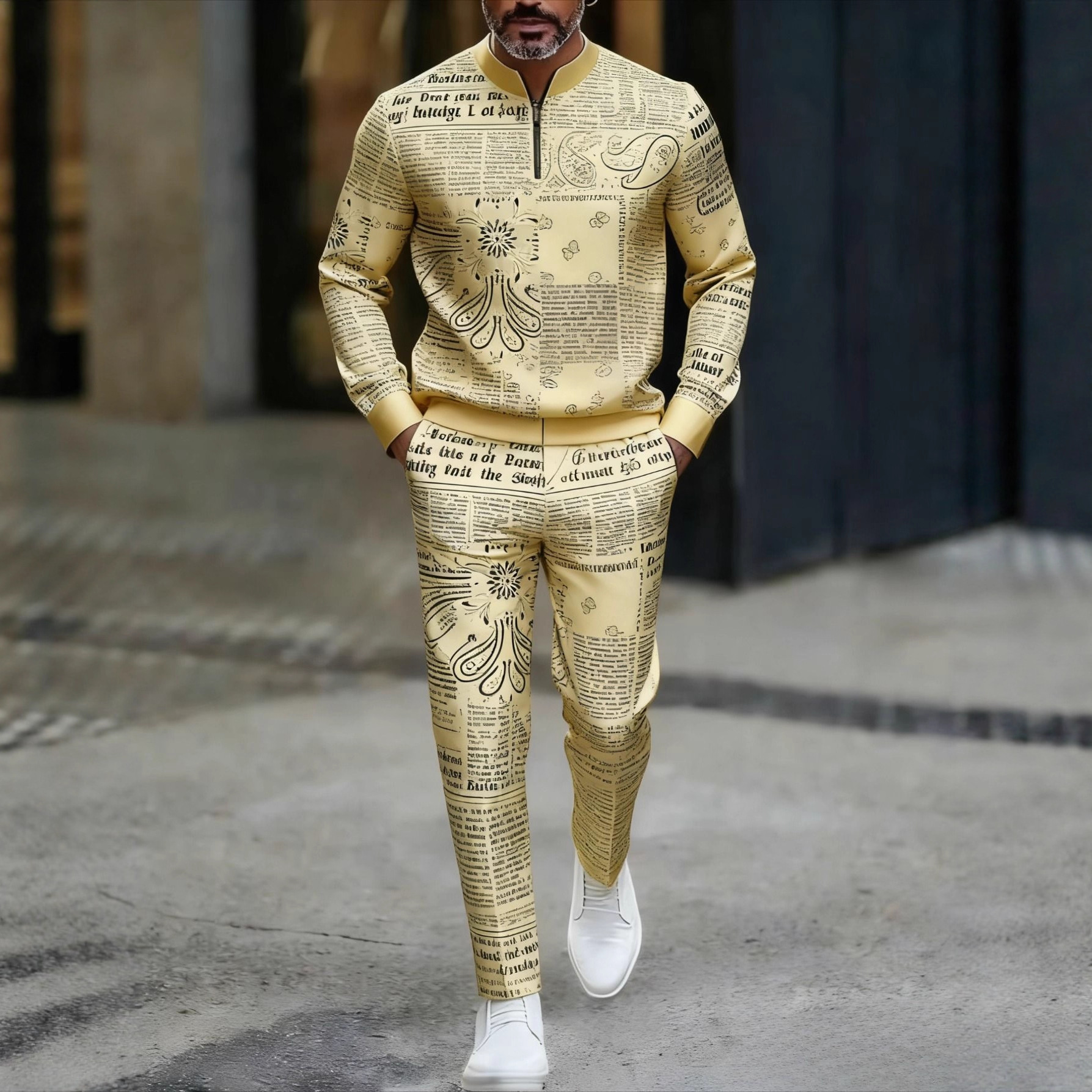 2025欧美亚马逊新款半开门襟拉链套头休闲时尚男士长袖长裤套装