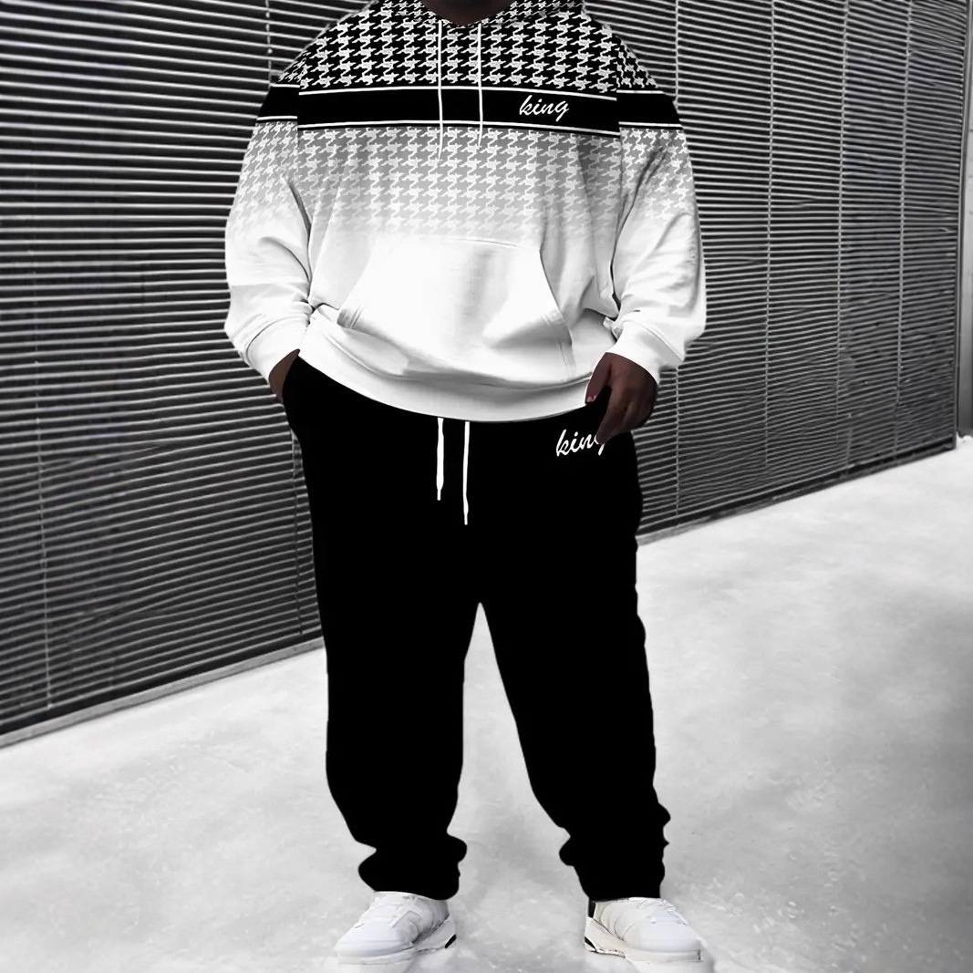 2025跨境热销黑白格纹国王连帽衫3D数码印花卫衣卫裤套装工厂直销