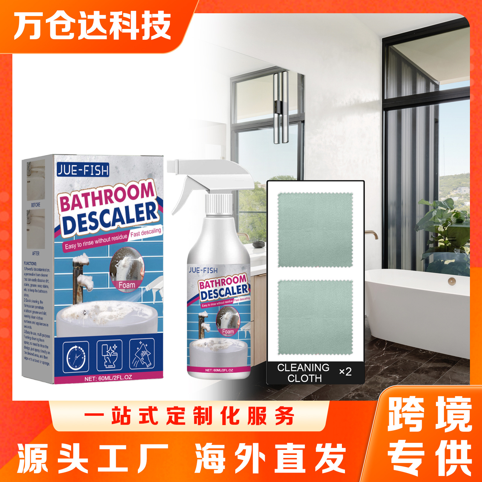 Jue Fish浴室清洁剂 不锈钢洗手盆去污淋浴房浴缸玻璃水垢清洁剂