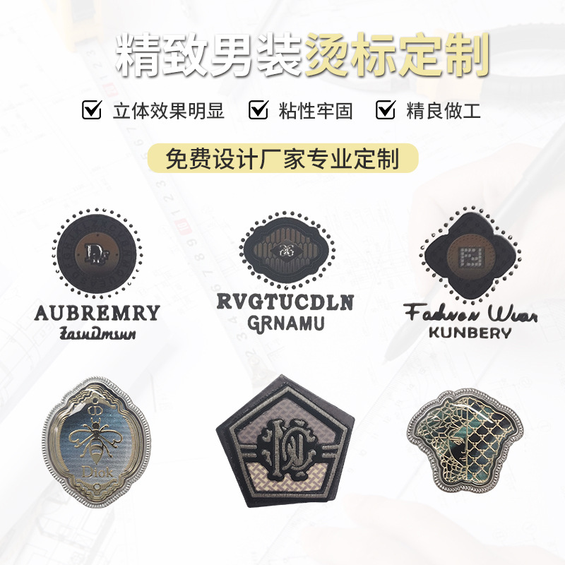 3D模具硅胶热转印字母烫标烫画服装压烫标高弹logo硅 胶标贴定 做