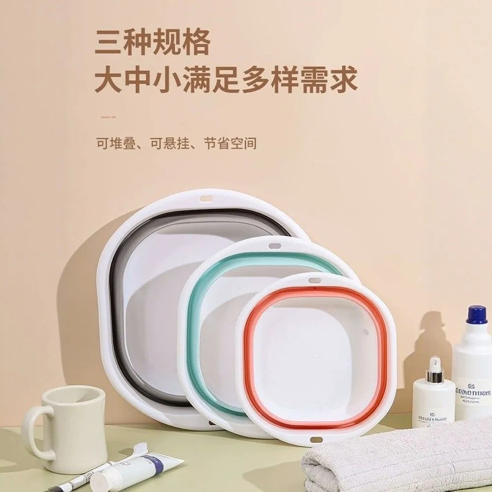 家用加厚折叠洗脸盆饵盘渔具学生宿舍便携塑料大号盆子方形折叠盆