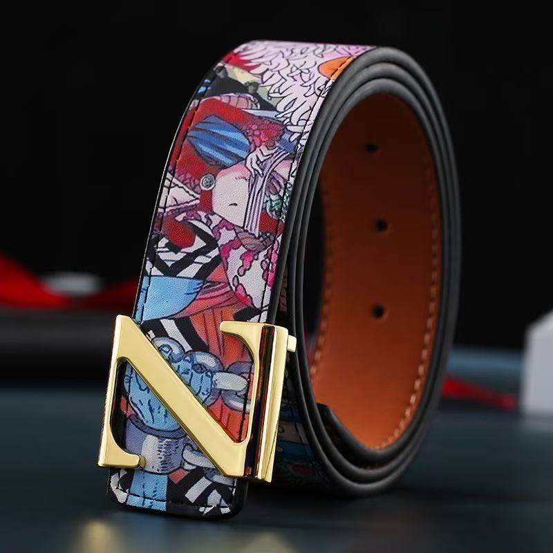 新款少年皮带时尚字母皮带商务装休闲百搭学生适用涂鸦皮带