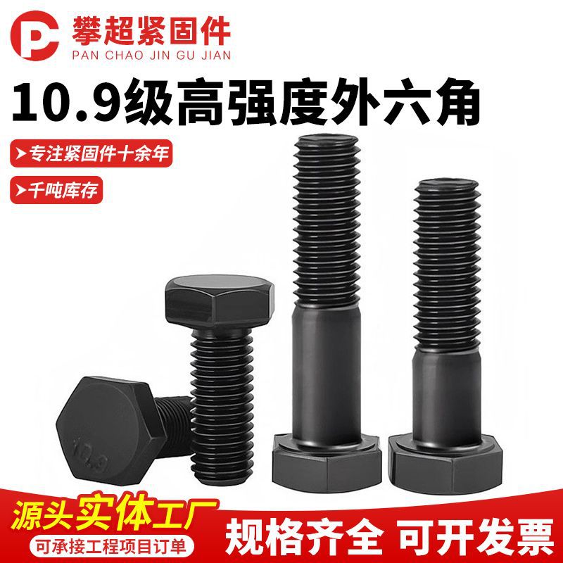 10.9级高强度外六角螺栓六角头加长螺栓氧化发黑全牙半牙螺丝大全