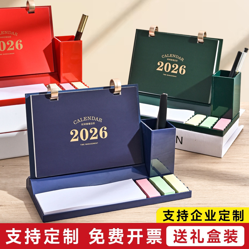 2026马年台历商务笔筒创意桌面摆件企业宣传计划本广告加LOGO定制