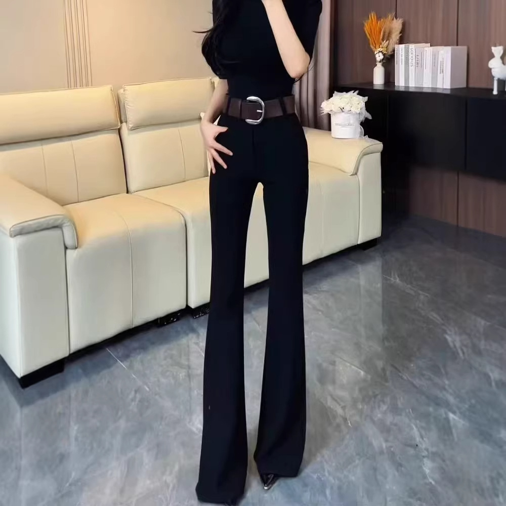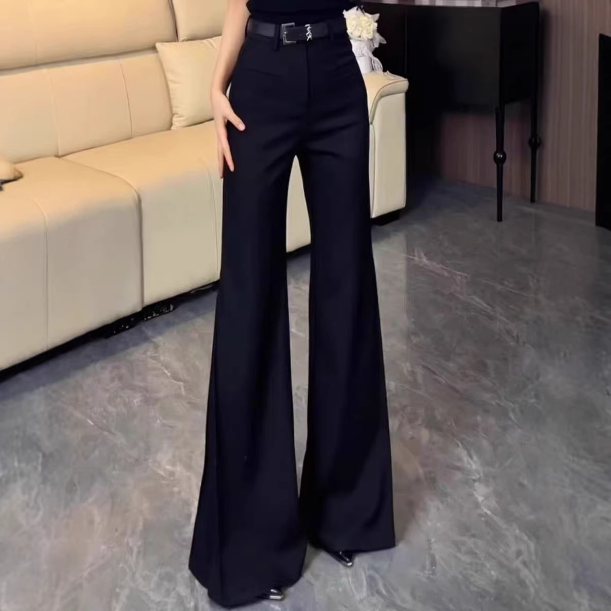 黑色微喇叭休闲西装裤女2026春夏季新款高腰显瘦百搭垂感拖地裤