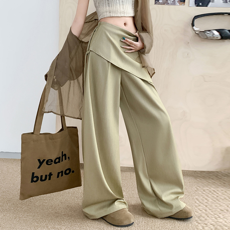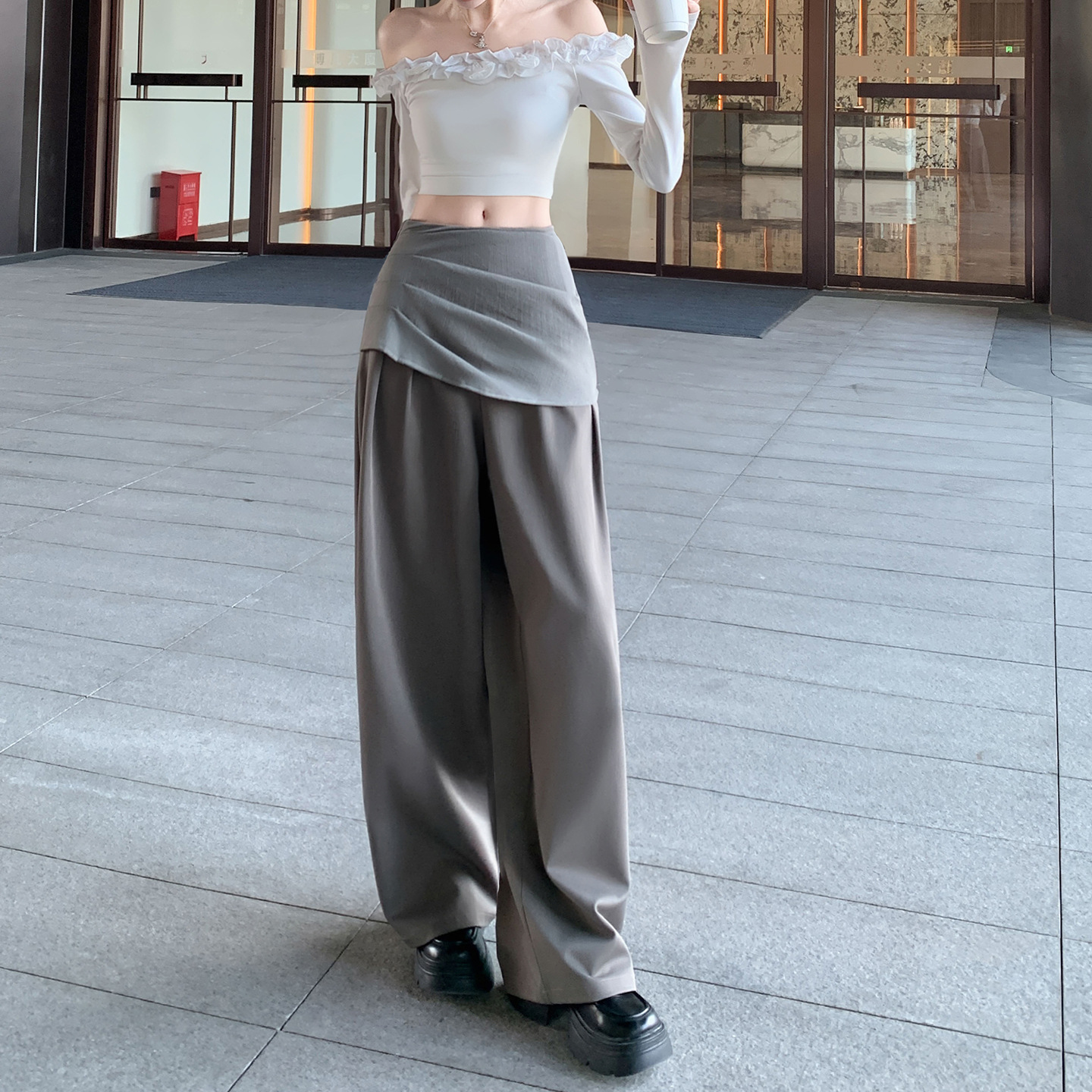 假两件西装屁帘阔腿裤女春夏2026新款高腰显瘦不规则宽松直筒长裤