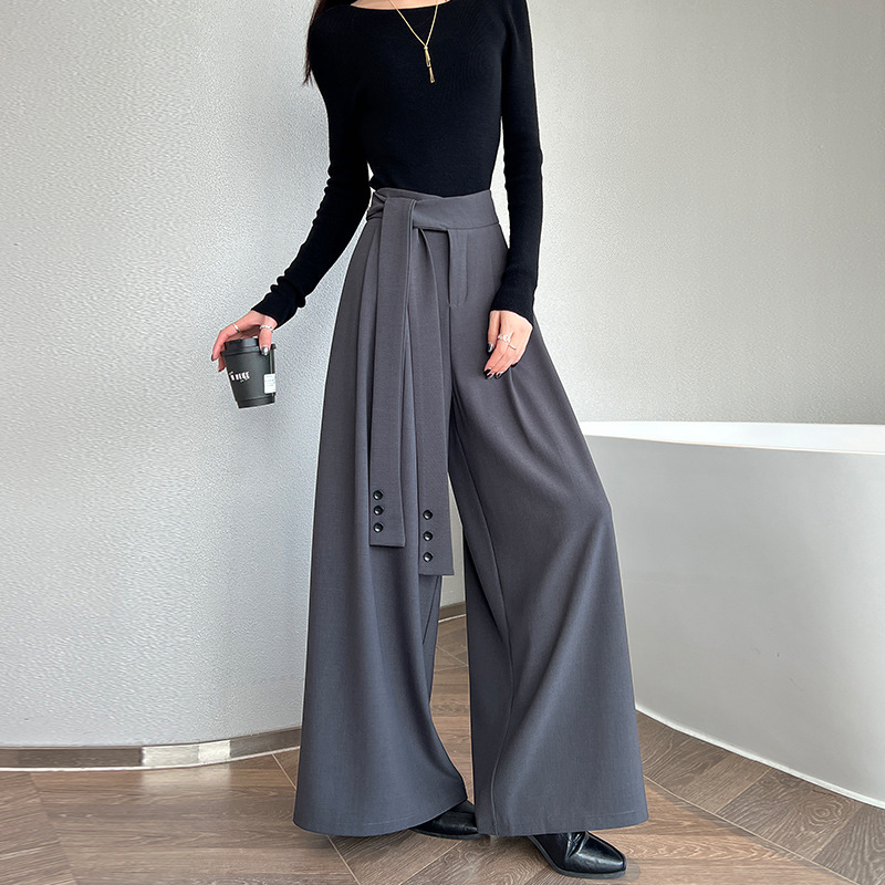绑带西装裤女2026春夏季设计感高腰垂感直筒宽松休闲拖地裤子女