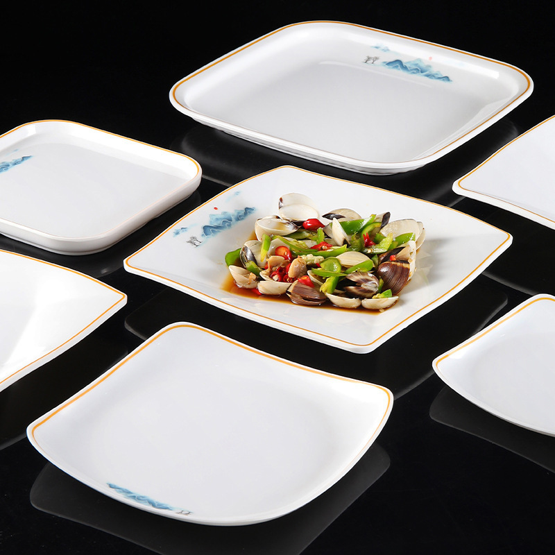 密胺餐具四方盘仿瓷盘子快餐盘饭店火锅菜盘塑料冷菜碟子餐盘商用