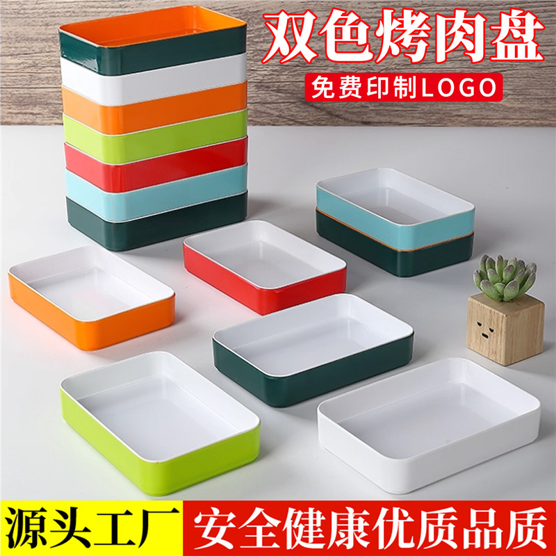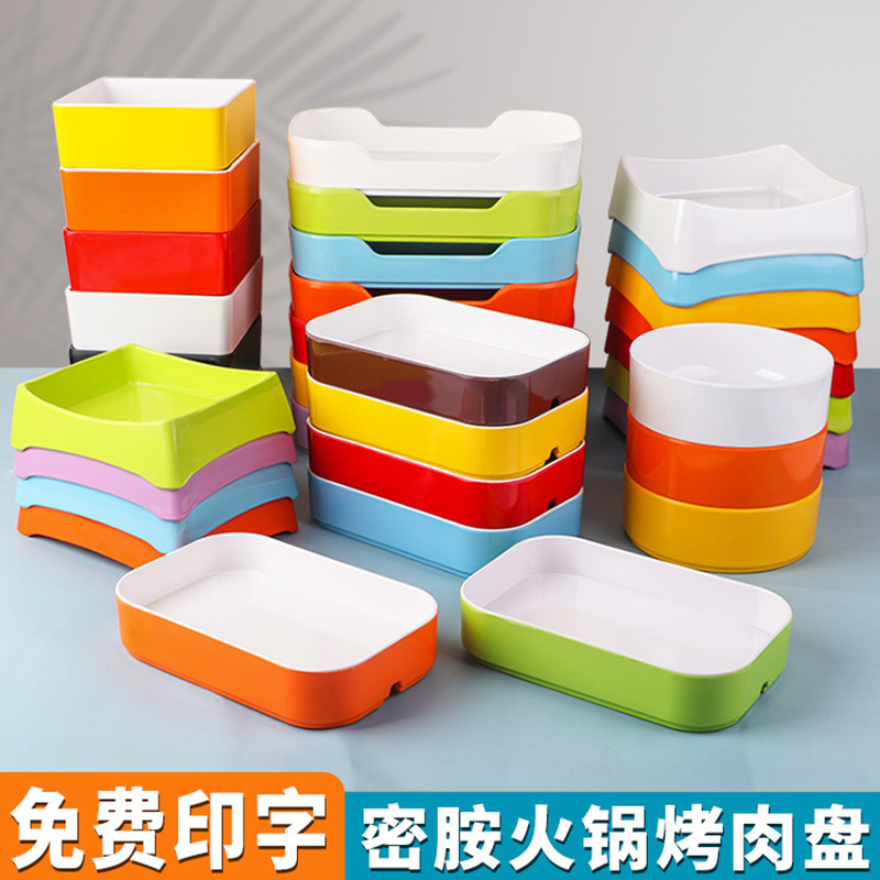 密胺串串火锅店餐具长方形自助烤肉专用盘子仿瓷商用叠加菜盘批发