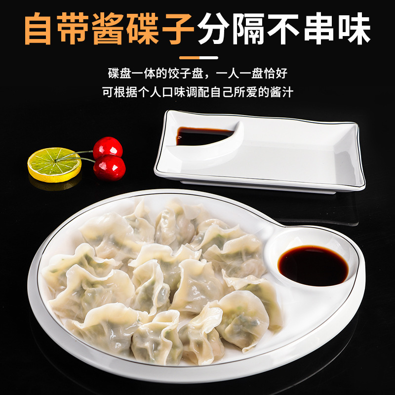 白色密胺饺子盘子带醋碟分格水饺专用盘商用餐厅虾盘薯条小吃碟子