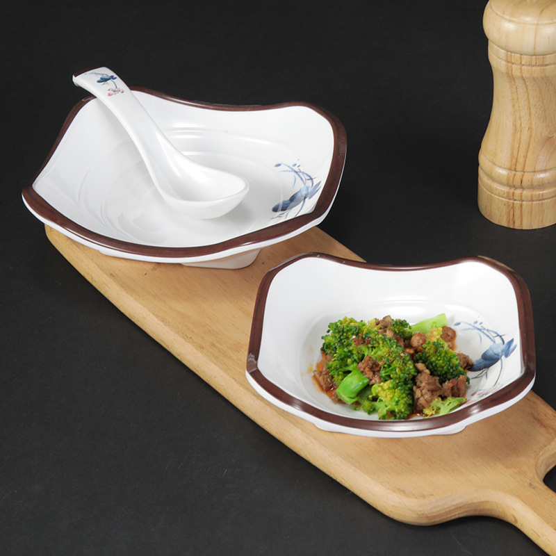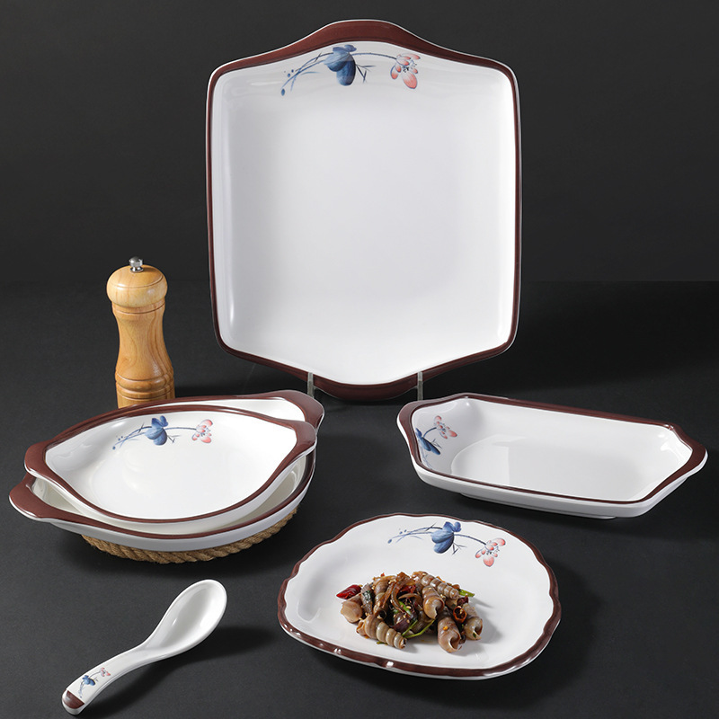 密胺异形餐具盘子双耳汤盘塑料菜盘瓷饭店餐厅创意凉菜碟子商用