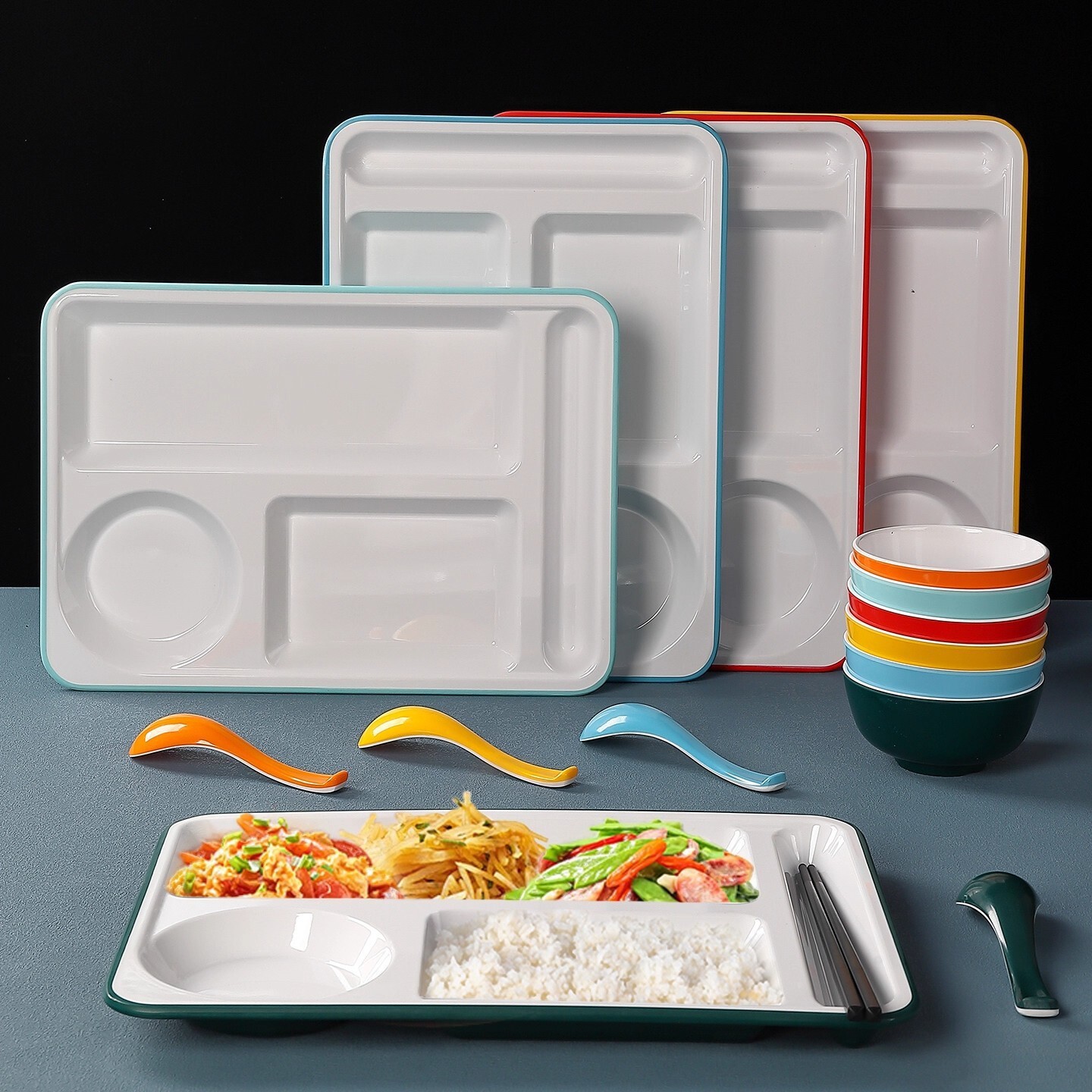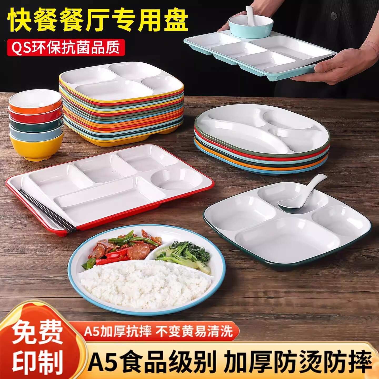 密胺餐具分格餐盘塑料分隔盘子四格盘学校食堂六格快餐盘打菜饭盘