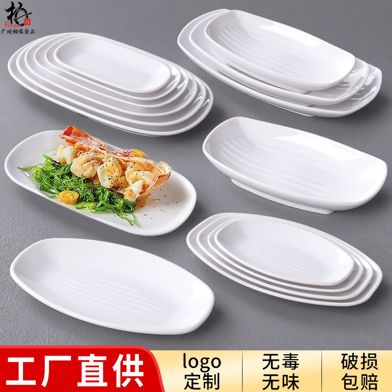 密胺白色椭圆形鱼盘商用仿瓷塑料大号碟子创意酒店餐厅饭店菜盘子