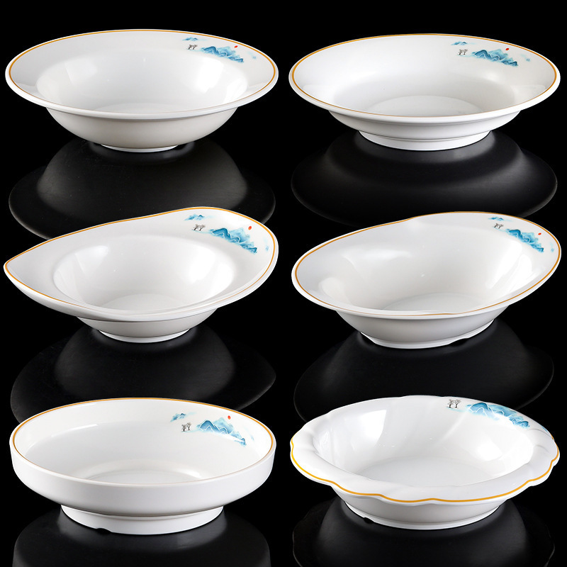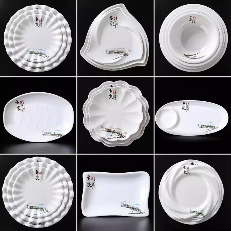 密胺餐具火锅盘凉菜盘炒茶餐厅菜盘碟子圆形盖饭盘平盘西餐盘快餐