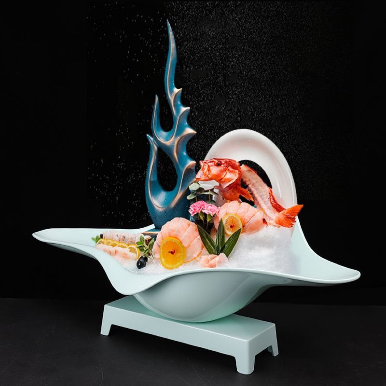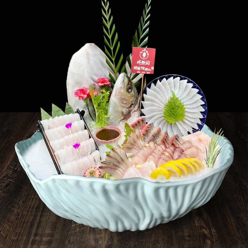 海螺型刺身盘冰盘大鱼生专用盘三文鱼盘日式意境菜餐具海鲜大盘子