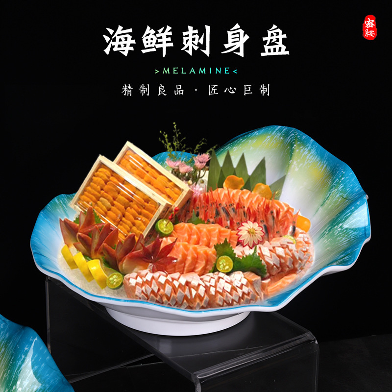 密胺刺身盘餐具海鲜姿造日料三文鱼专用盘高端海鲜摆盘创意肥牛盘