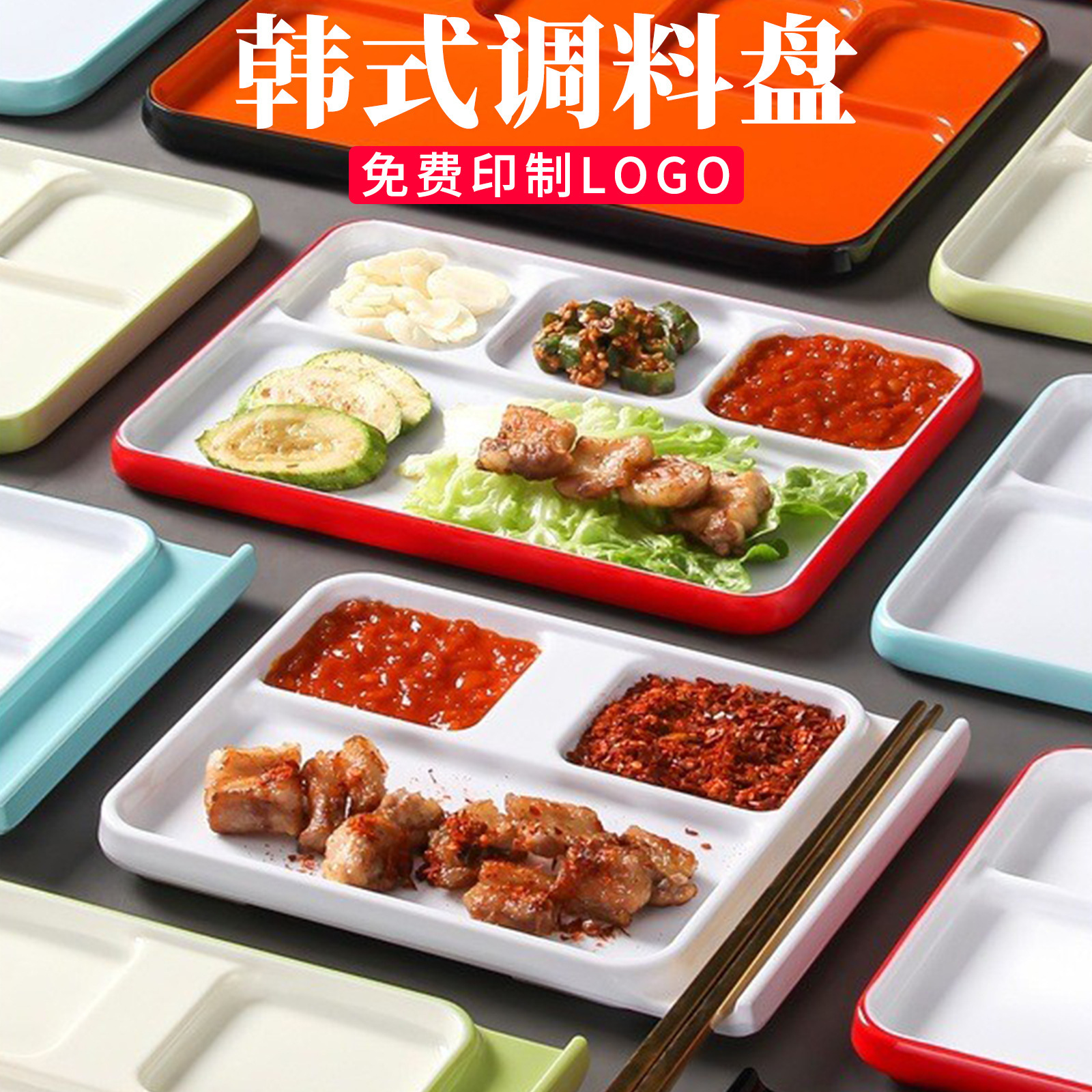 密胺火锅餐具蘸料调料酱油碟子瓷创意烤肉两格三格小吃菜泡菜盘子