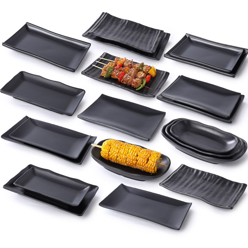 烧烤店专用盘子长方形商用密胺塑料黑色创意个性餐具仿瓷火锅菜盘