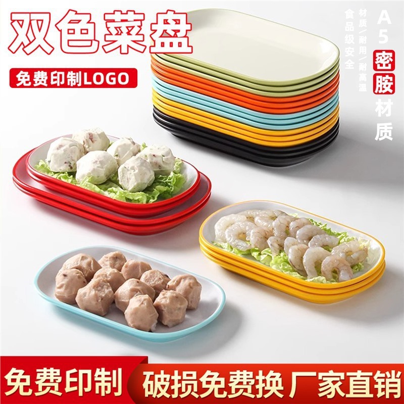 密胺餐具火锅店菜盘长方形快餐肠粉盘专用创意塑料烧烤自助餐盘子