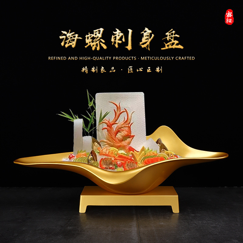 日式刺身专用海螺刺身盘酒店冒烟干冰盘火锅店三文鱼高档海鲜拼盘
