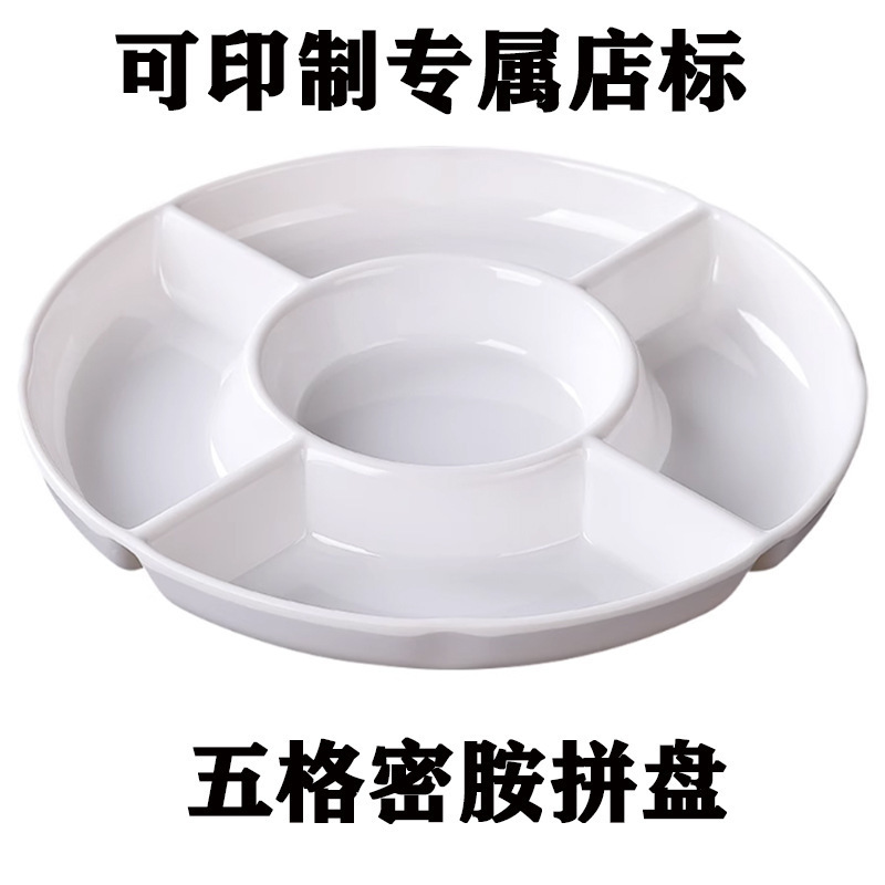 密胺快餐盘子圆形餐厅商用圆盘网红饭店卤味多格拼盘仿瓷餐盘